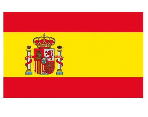 | SIZE & MATERIAL | 9" x 12" SPANISH COURTESY FLAG WITH CREST PRINTED KNITTED POLYESTER, 9" x 12" SPANISH COURTESY FLAG COLOURS ONLY WOVEN POLYESTER, 12" x 18" SPANISH COURTESY FLAG WITH CREST WOVEN POLYESTER |